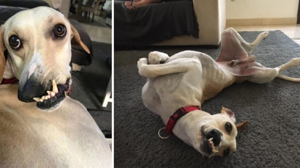 Esse foi o caso de Allan, um belo cruzamento entre Saluki e Boxer de uma ano de idade. Ele nasceu com uma peculiaridade genética em que seu nariz se contorce e se inclina para a direita quando ele fecha a boca.